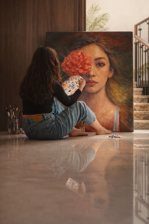 It may sound unusual for a chartered accountant—the girl who studied numbers and taxation for many years—to finally discover a relationship with art. I’ll describe my art as an extension of my storytelling. Each artwork is evocative and tells a story in its own way. Painting for me is like a mental detoxification, a journey so cathartic I barely ever think where it can lead me. Welcome to my space.
